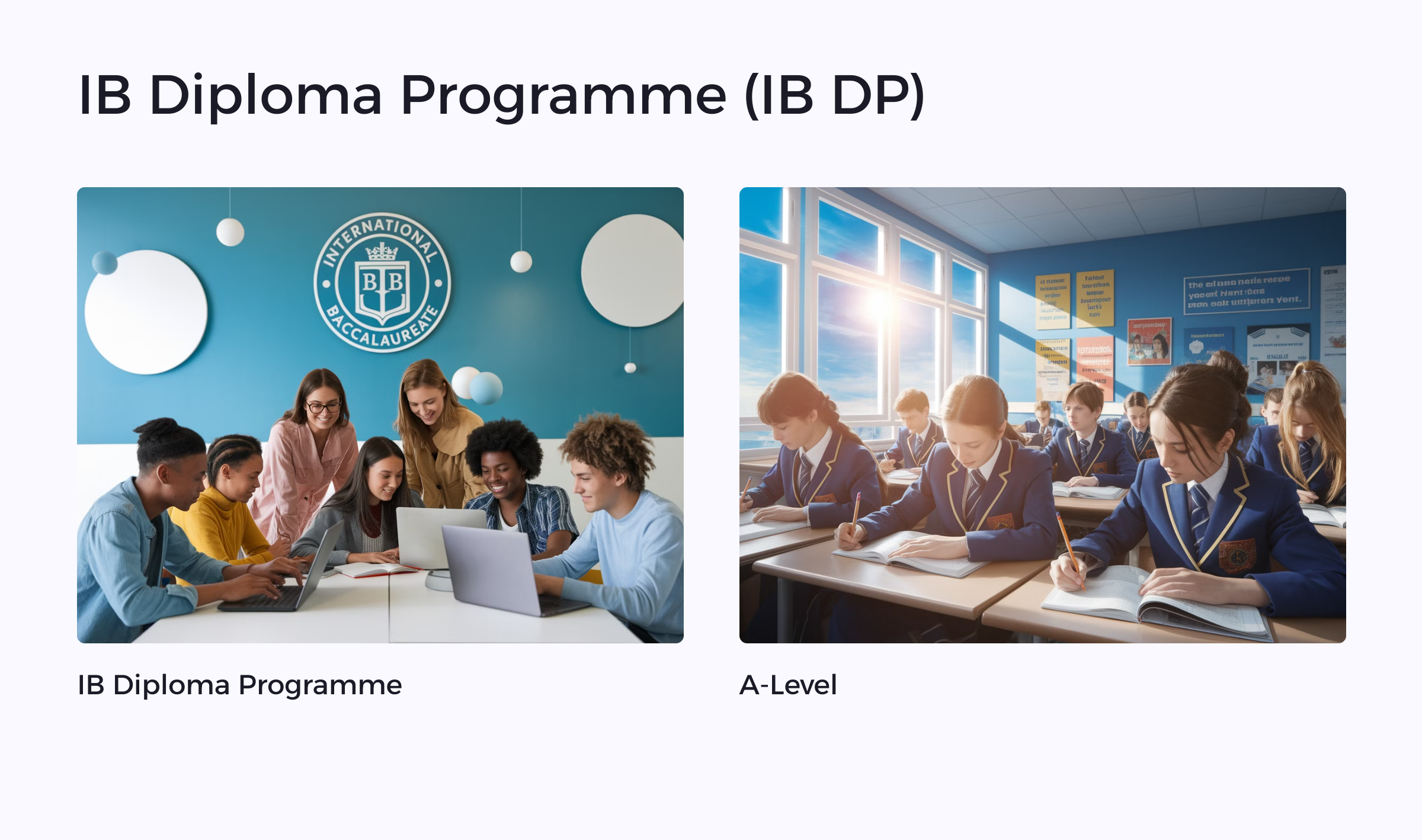 International Baccalaureate Diploma Programme(IB DP)은 16-19세 학생을 위한 2년 과정의 국제 교육 프로그램입니다. 전 세계 150개국 이상에서 인정받는 IB는 비판적 사고력과 글로벌 시민의식 함양을 강조합니다.