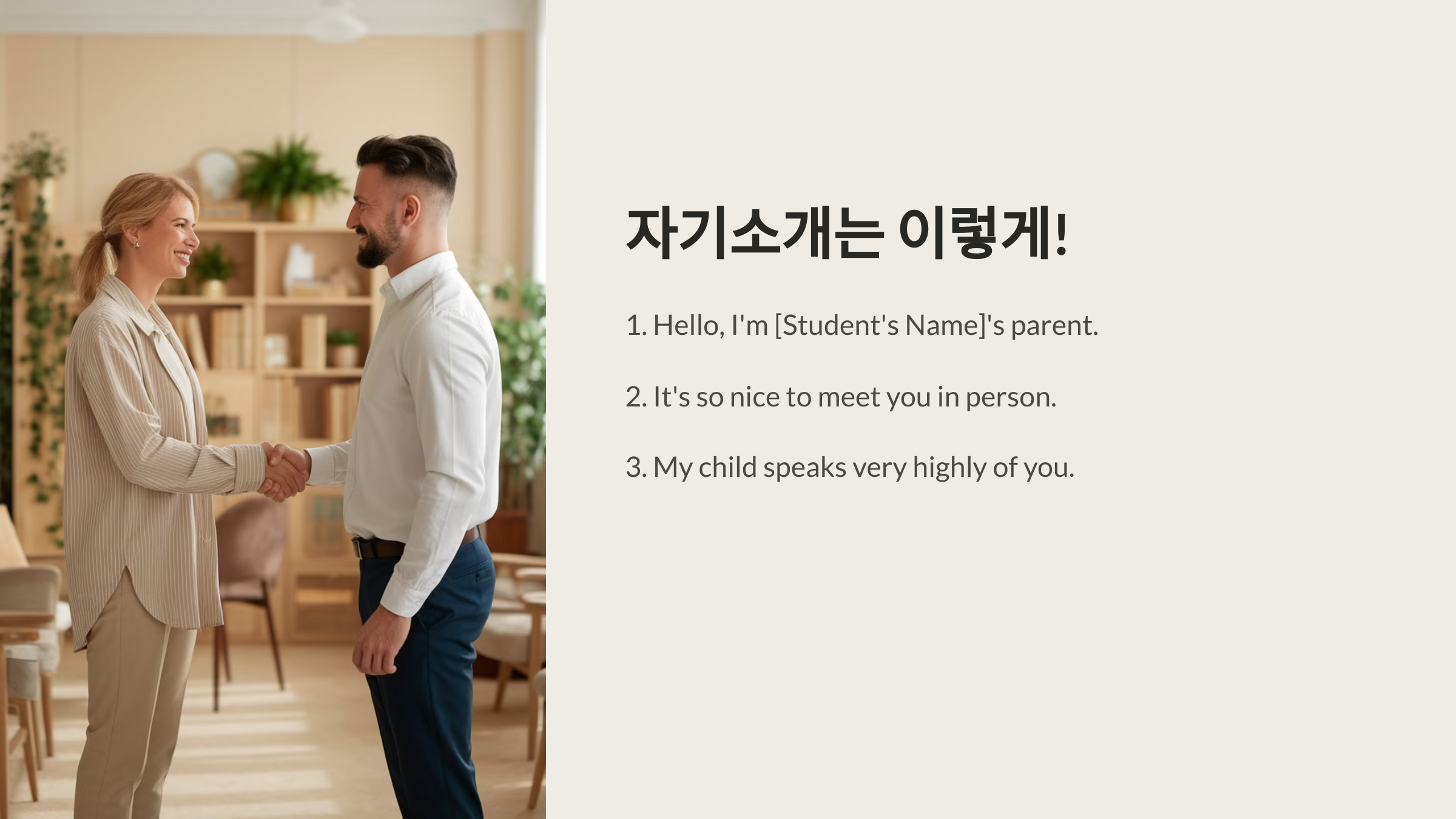 선생님과의 첫 만남에서는 좋은 첫인상을 남기는 것이 중요하잖아요? 😊