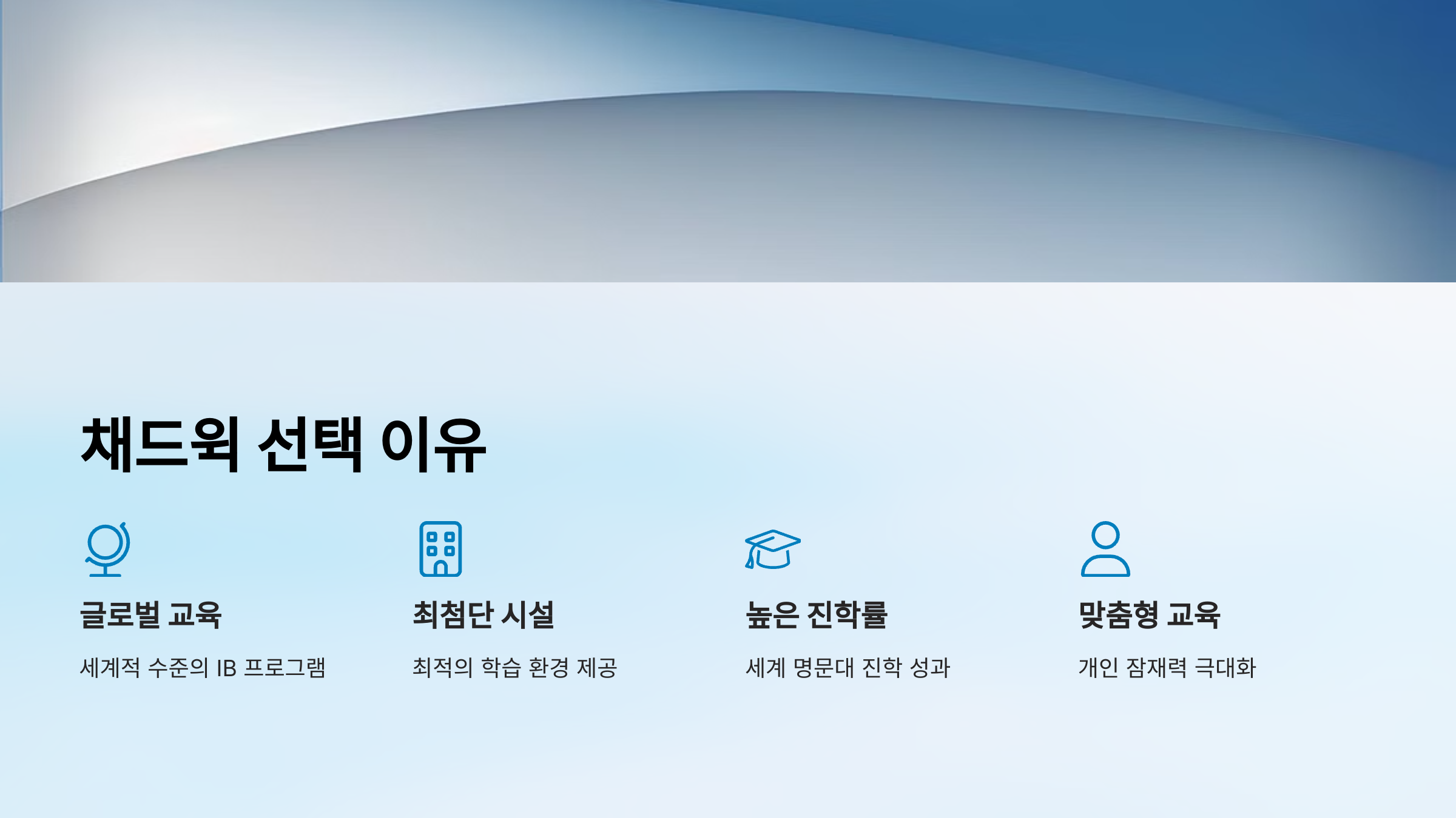 채드윅은 세계적 수준의 IB 교육과 독창적인 학습 환경으로 이미 많은 학부모님들의 선택을 받고 있습니다.