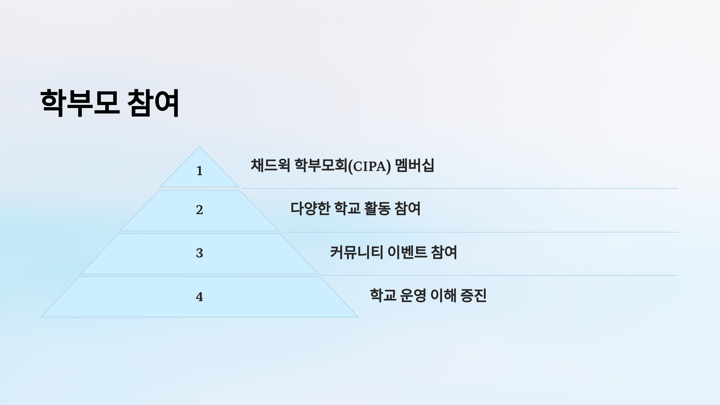 모든 학부모는 채드윅 학부모회(CIPA)의 멤버로서 다양한 학교 활동과 커뮤니티 이벤트에 참여할 수 있습니다.