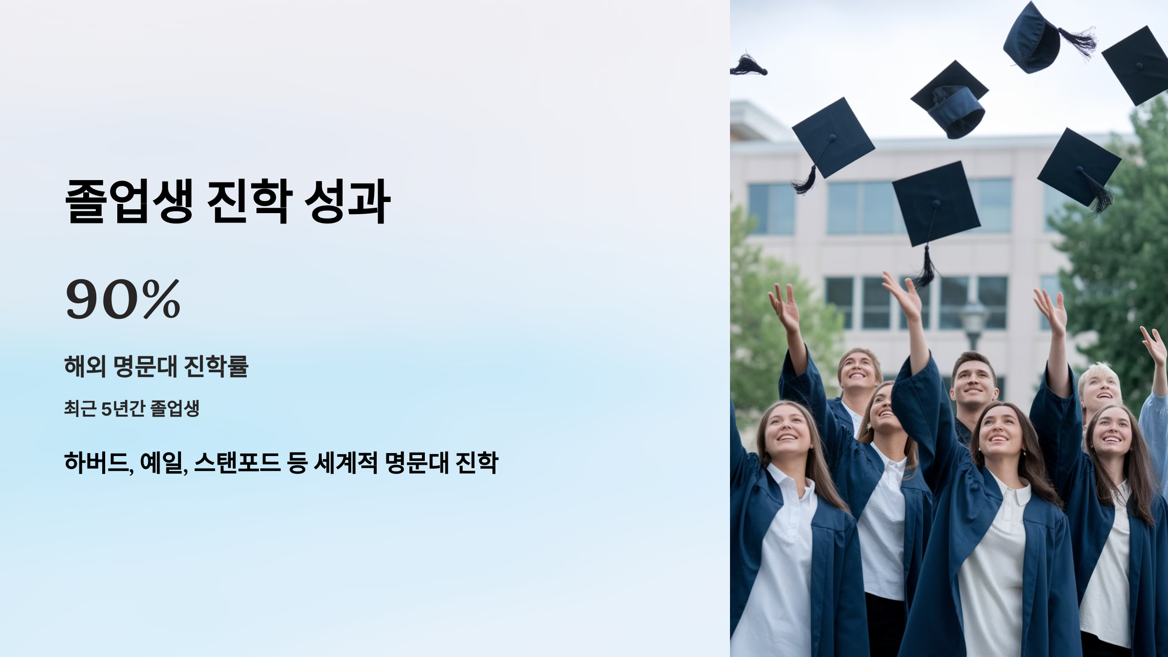 최근 5년간 졸업생의 90% 이상이 해외 명문대학에 진학했으며, 글로벌 네트워크와 진로 지원 시스템이 이러한 결과를 가능하게 했습니다.