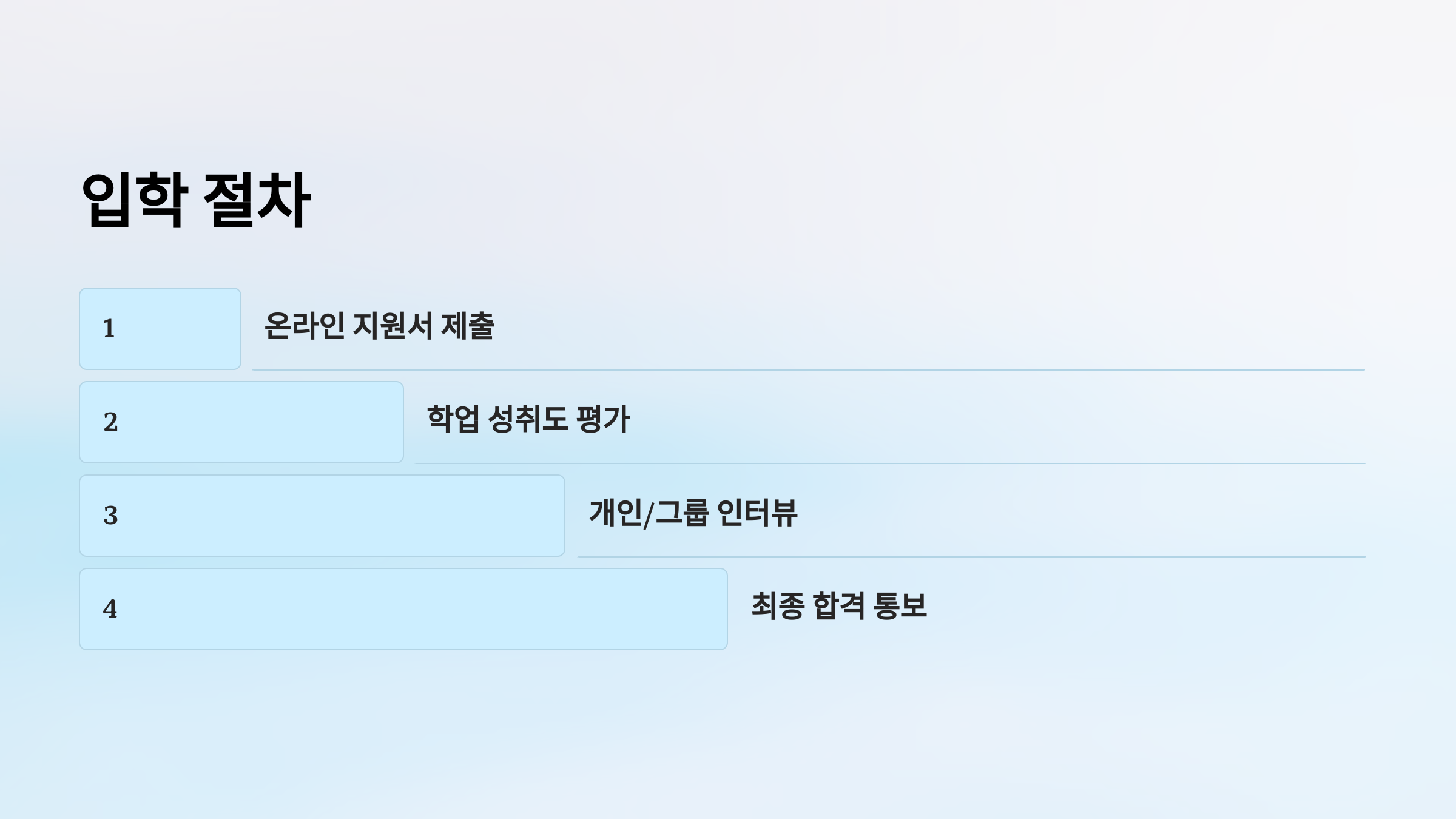 입학 과정은 다음과 같이 진행됩니다: