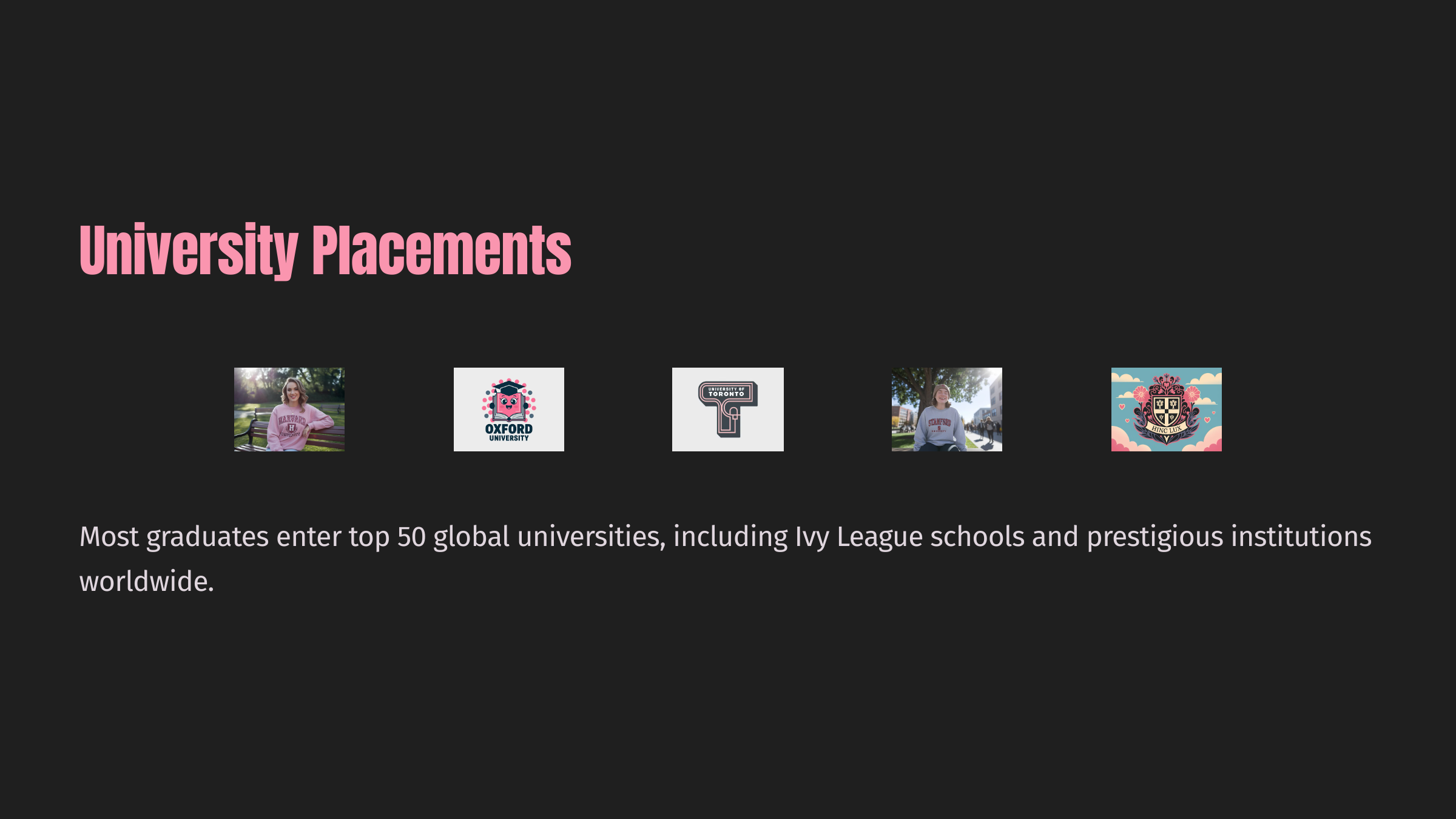 • 주요 진학 대학: 미국 아이비리그, 영국 옥스퍼드/케임브리지, 캐나다 토론토대 등 세계 50위권 대학.