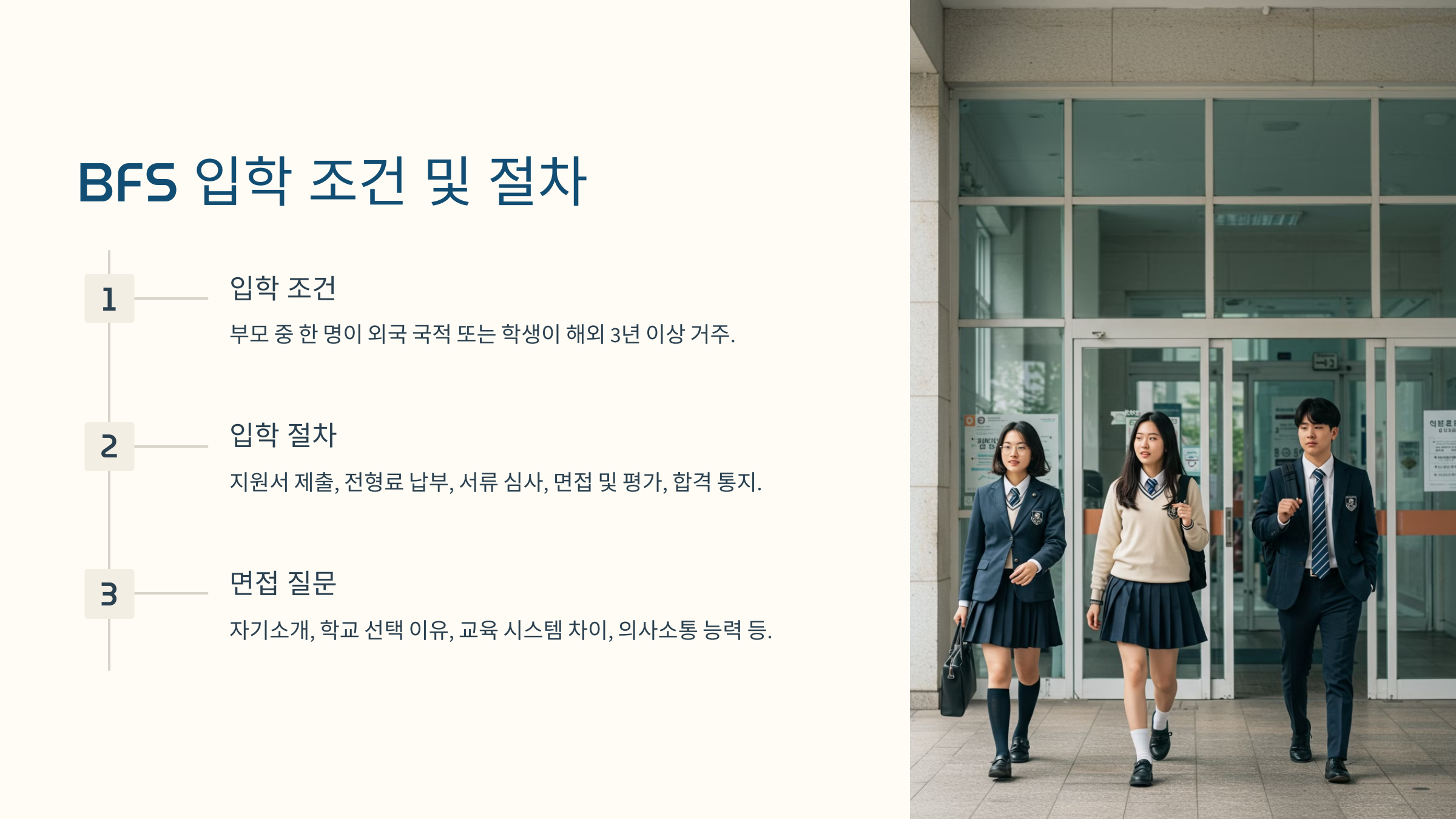 부산외국인학교(BFS)와 부산국제외국인학교(BIFS)의 학비, 입학 절차, 교육과정 차이를 정리했습니다.