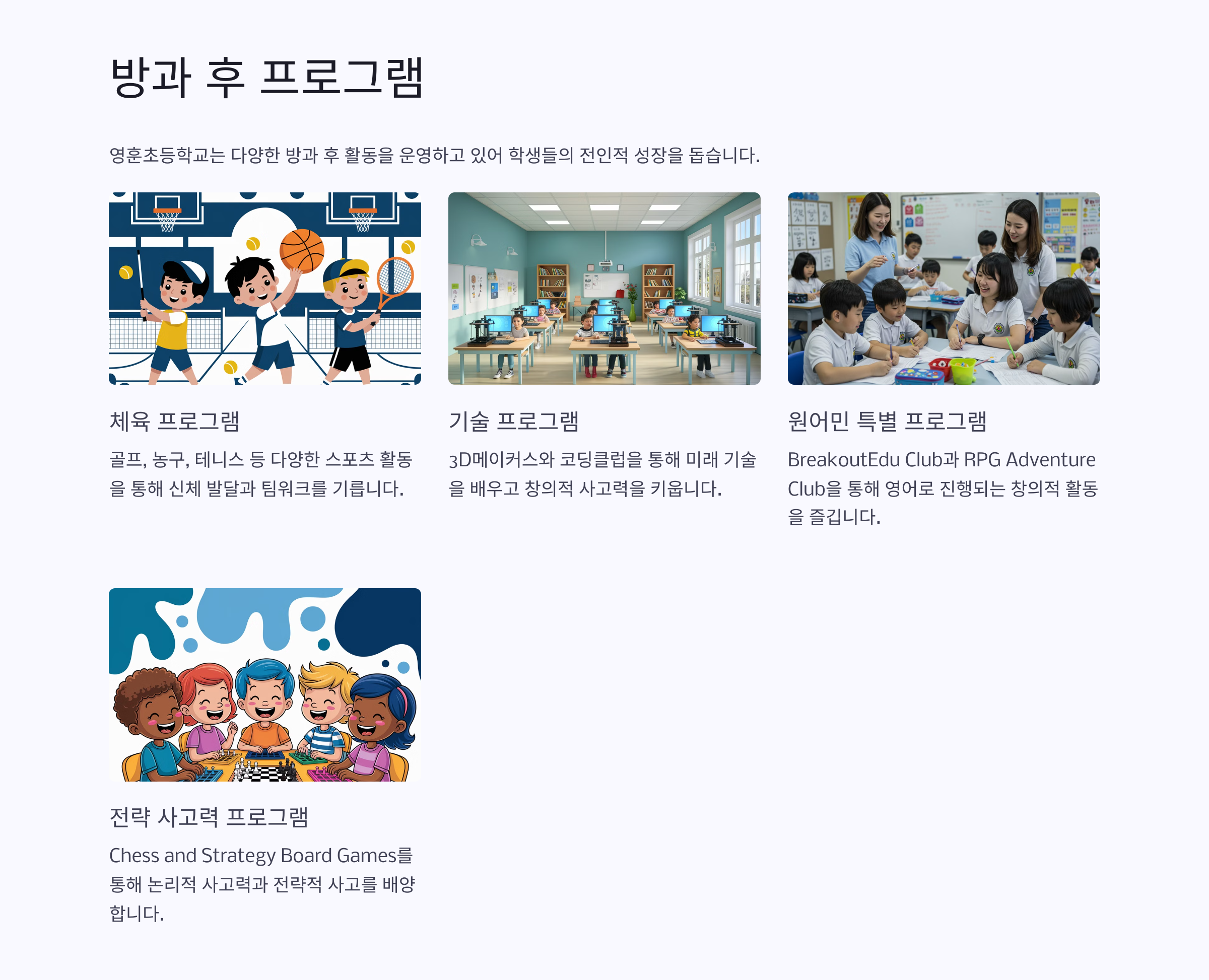 영훈초등학교는 다양한 방과 후 활동을 운영하고 있습니다.
